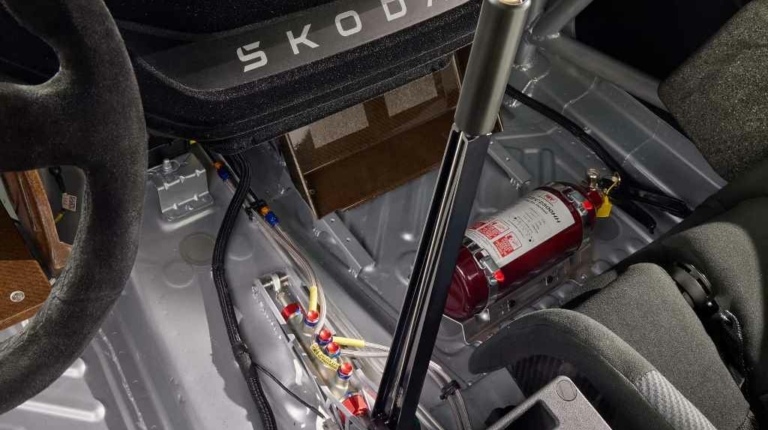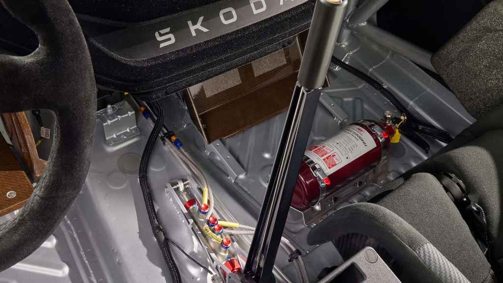 Завершують візуальні зміни потужний дифузор на кормі, спеціальні 20-дюймові колеса, взуті у низькопрофільні шини, і наклейки з написами Skoda Motorsport. У салоні ралі-кара встановлено два гоночні ковші Atech з шеститочковими ременями безпеки та гоночне рульове колесо. Інтегрований каркас безпеки.