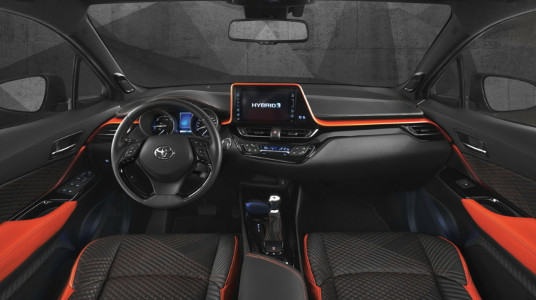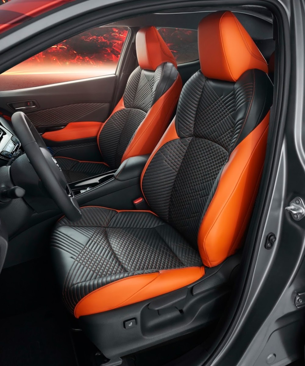 Узнать Toyota C-HR Hy-Power можно по черной глянцевой окраске деталей в нижней части кузова, ярко-оранжевой крыше и особым 20-дюймовым литым дискам.