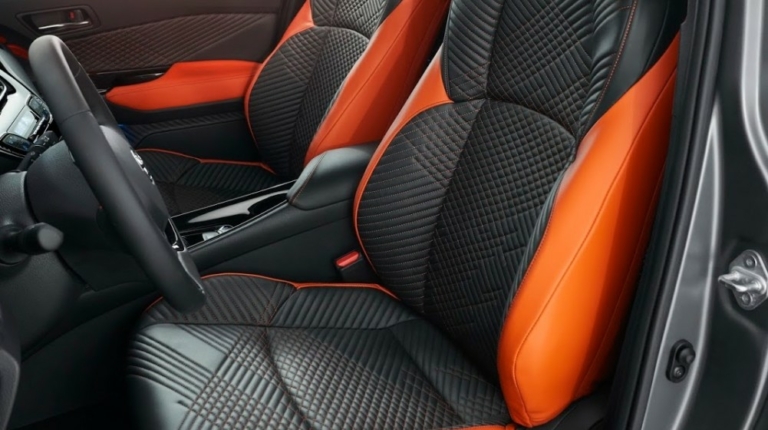 Черный и оранжевый цвета преобладают и во внутренней отделке. Сиденья, к слову, отделаны кожей.