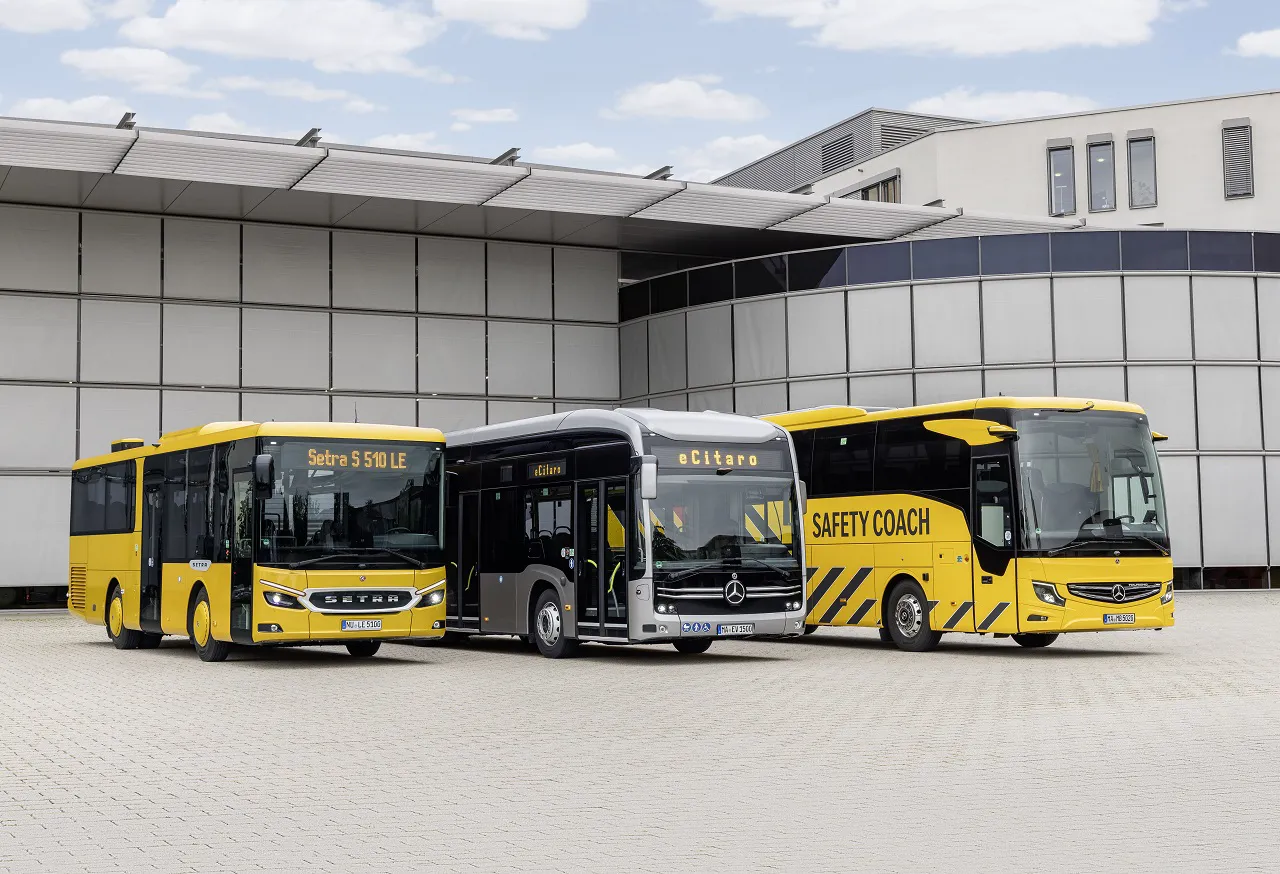 На виставці IAA Transportation 2024 відбулася й перша публічна презентація туристичного автобуса Mercedes-Benz Safety Coach. Це новітнє виконання моделі, яке традиційно демонструє поточний стан технологій у сфері безпеки. Відвідувачам також показали нове сімейство приміських автобусів Setra Multiclass LE.