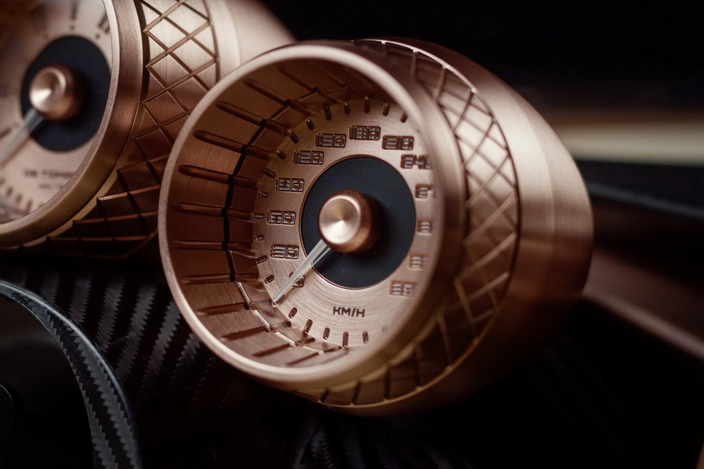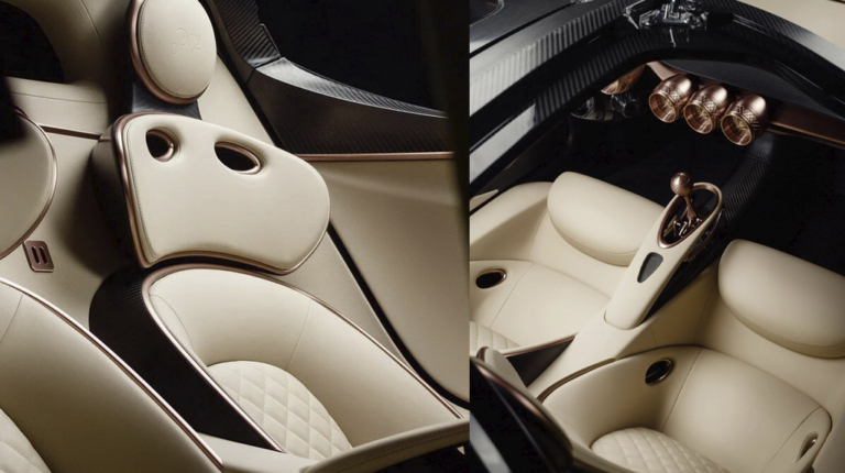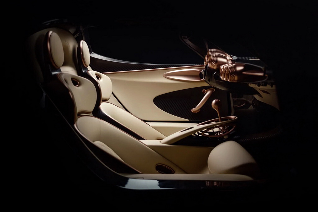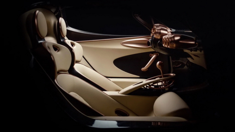Набагато цікавіше виглядає інтер’єр новинки. Унікальні сидіння більше схожі на дизайнерські крісла, які можна побачити в магазині дорогих меблів, ніж у суперкарі. Вони виконані шкірою кремового кольору, а між ними знаходиться важіль перемикання передач мідного кольору з відкритим механізмом перемикання. Акценти мідного кольору продовжуються на шести виготовлених на замовлення датчиках на панелі приладів. De Tomaso стверджує, що інтер’єр P72 натхненний світом ювелірних виробів і легко зрозуміти, чому.