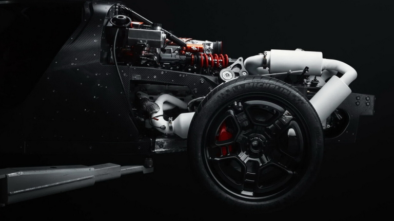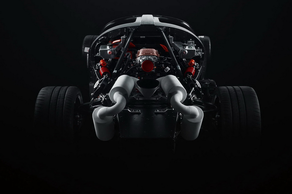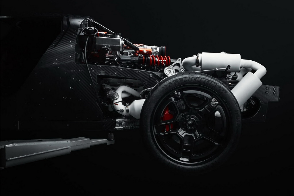 Кузовні панелі та опорний монокок виконані з карбону. Перший екземпляр знаходиться в процесі збирання і ще не пофарбований.