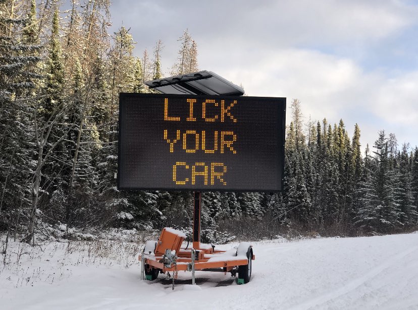 На дорогах Канади з’явився цікавий знак, що закликає остерігатися диких лосів, що лижуть автомобілі. Їхня популяція зросла так сильно, що тварини не соромляться виходити на траси і облизувати припарковані машини. Місцева влада вважає нові звички тварин надзвичайно небезпечними.