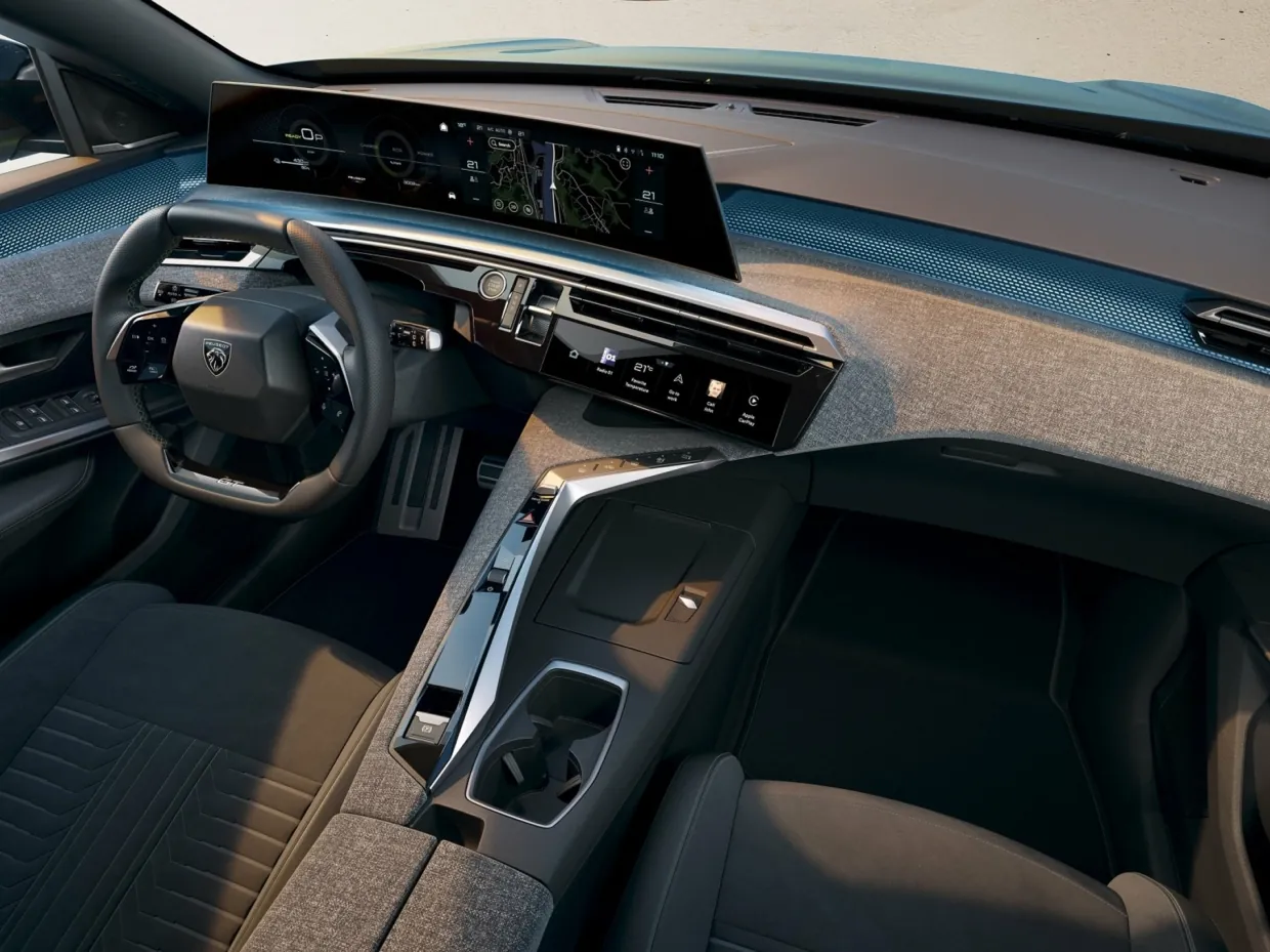 Інтер'єр електричної версії кросовера альянс розсекретив влітку. Peugeot e-3008 дістався фірмовий i-Cockpit нового покоління з 21-дюймовим вигнутим дисплеєм на передній панелі та високо встановленою панеллю приладів. Також кросоверу дісталися компактне мультифункціональне кермо та невеликий джойстик перемикання коробки передач. На передній панелі — набір сенсорних кнопок, функції яких водій може запрограмувати на власний розсуд.