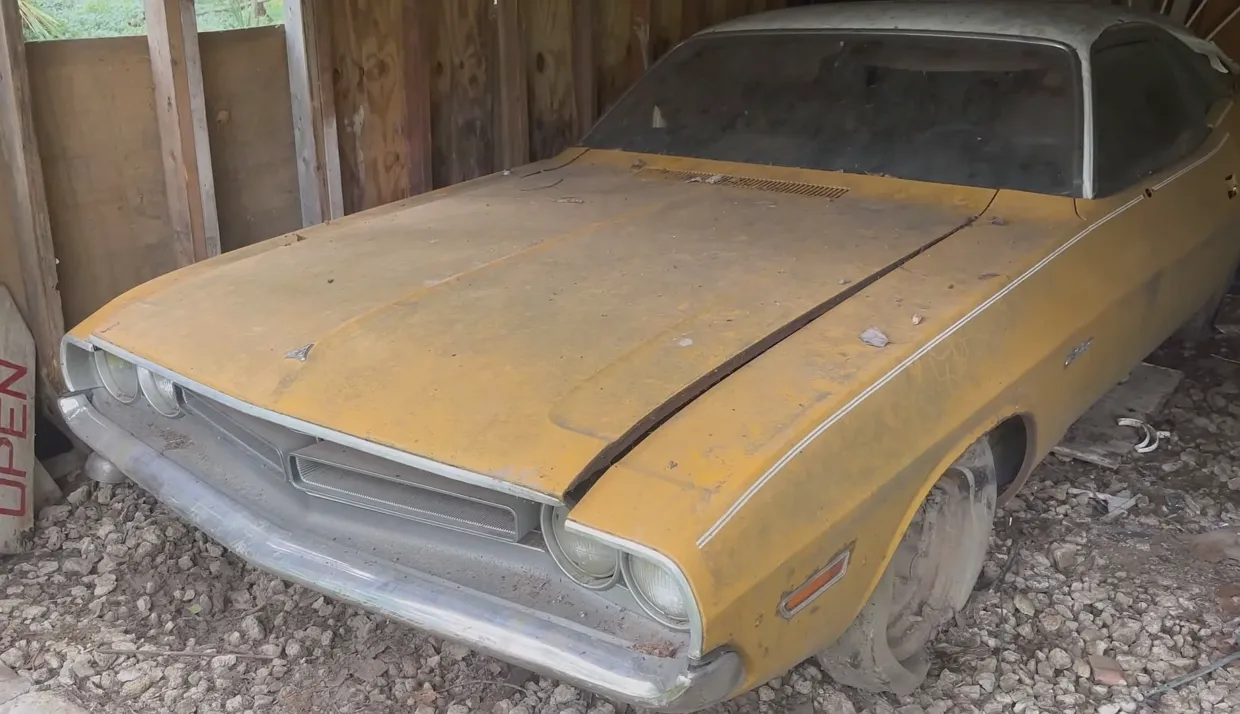 Під капотом цього Challenger 5,2-літровий двигун Chrysler LA V8 з двокамерним карбюратомом. Із конвеєра потужність двигуна складала 198 к.с. У пару йому дісталася 3-ступінчаста механічна коробка. Перевіряти чи працюють агрегати, мийщики не стали. Принаймні у відео цього немає. У будь-якому випадку, реставрація такого автомобіля коштуватиме надто дорого.