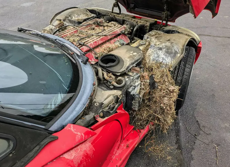 У салоні також багато цвілі і павутиння. Ще гірша ситуація під капотом цього Viper. Там птахи звили собі гніздо, натягнувши величезну кількість соломи та тонких лозин. Сам мотор покритий незрозумілою липкою коричневою жижею. Таке видовище жахнуло всіх, хто знаходився на місці «евакуації» цього маслкара. Адже для того, щоб повернути йому колишній вигляд, доведеться знатно попрацювати. Але дилер має намір це зробити, незважаючи на такі виклики.