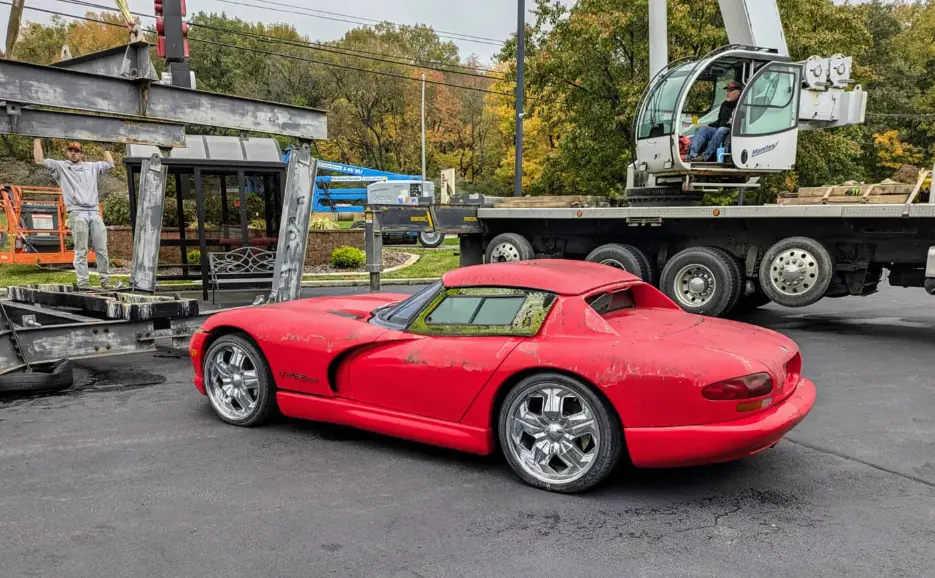 В американському штаті Кентукі місцевий дилер дуже нестандартно використовував культовий маслкар Dodge Viper. Він ще новим цей автомобіль видер на вивіску, де той простояв довгих 28 років.