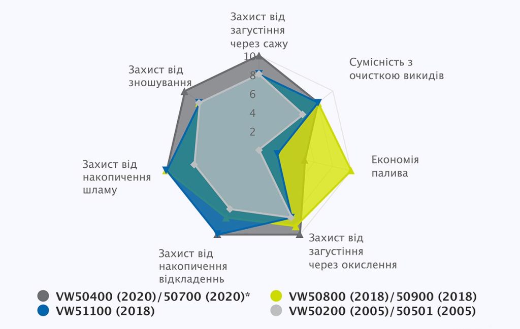 Олива з таким допуском орієнтована не просто на пересічні бензинові двигуни, а на потужні й високофорсовані агрегати VAG, в тому числі обладнані сажовими фільтрами GPF, які встановлюються на: