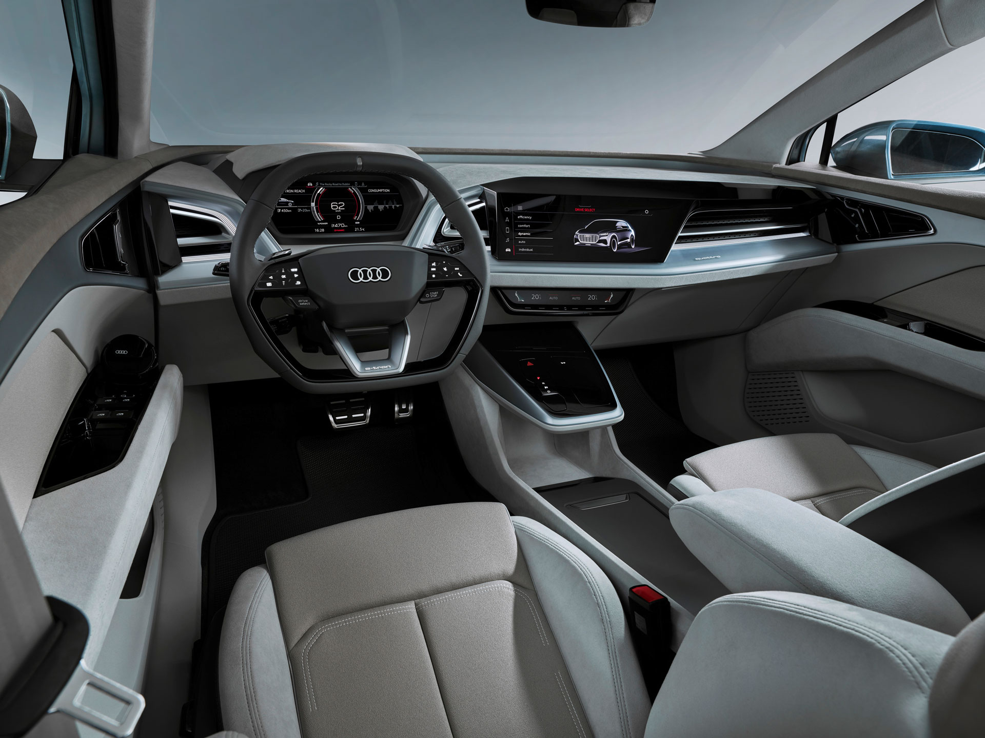Фото салону немає. Очікується, що він буде оформлений мінімалістично, так само як і в концепті. Усередині обіцяно появу центрального 12.3-дюймового дисплея. Із нього можна буде керувати великою кількістю функцій.