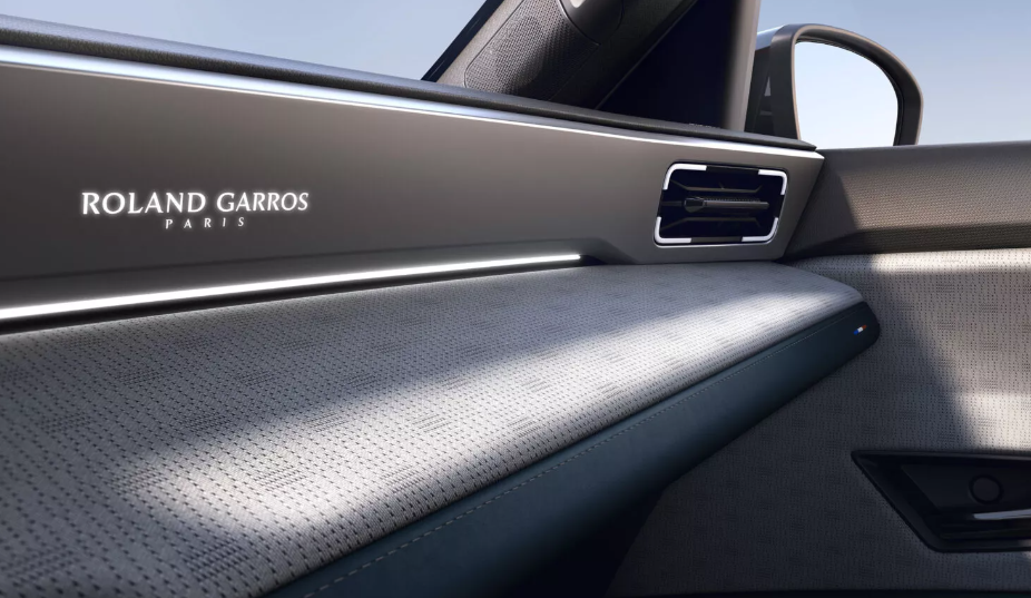 На кузові є логотипи Roland Garros, які обрамлені перехресним штрихуванням. Такі ж написи є й у салоні електрокара. Вони є на дверних картах і сидіннях з оббивкою з переробленого текстилю. Важіль трансмісії виконаний у вигляді рукоятки тенісної ракетки.