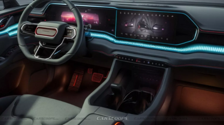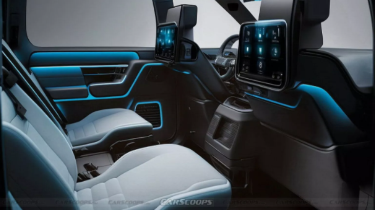 На думку інсайдерів, салон майбутнього електрокара буде сучасним та просторим. У його оснащення увійде цифрова панель приладів і мультимедійна система, екрани яких об’єднані в один блок. Також дисплеї призначені для пасажирів другого ряду. Є чотири окремі сидіння, панорамний дах, система клімат-контролю та широкий список систем допомоги водієві. Наскільки цей рендер Dodge Rampage відповідає дійсності, покаже час.