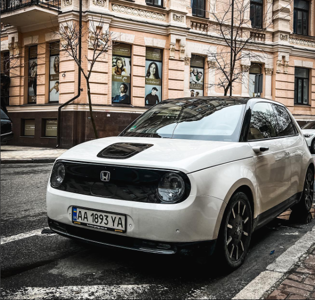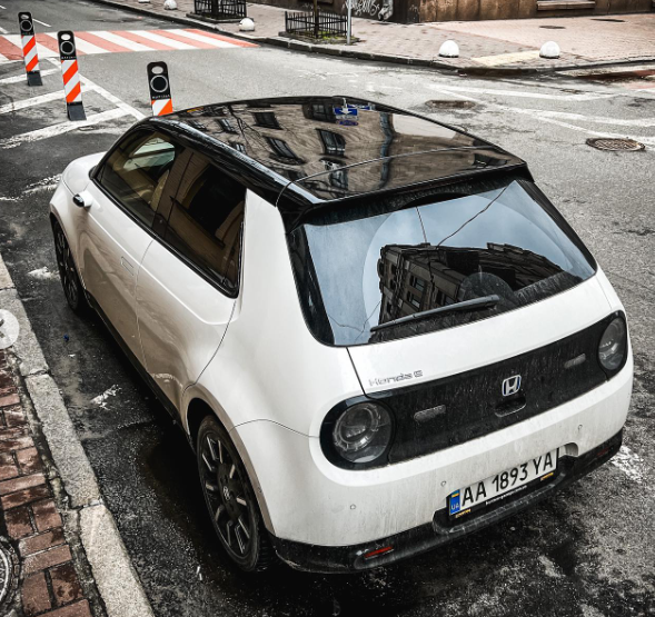 Суперміні Honda e є оригінальною моделлю японської марки. Електромобіль офіційно не пропонується на українському ринку, але один із екземплярів був помічений на вулицях Києва. Фото поділився t.o.p.c.a.r.s_u.a на своїй сторінці у Instagram.