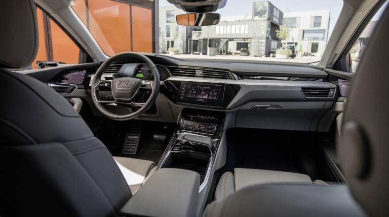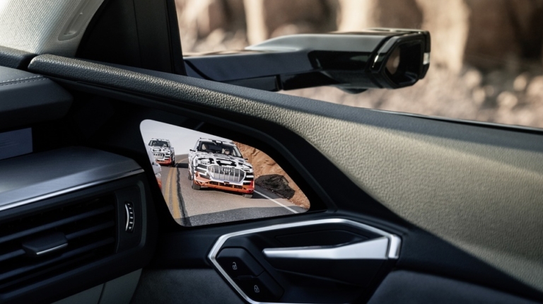 Примечательно, что одна из самых интересных особенностей предсерийного прототипа – камеры вместо наружных зеркал заднего вида – все же добралась до производства, делая электрический кроссовер Ауди первым серийным автомобилем, оснащенным таким оборудованием. Изображение с камер демонстрируется на дисплеях, встроенных в дверные карты.