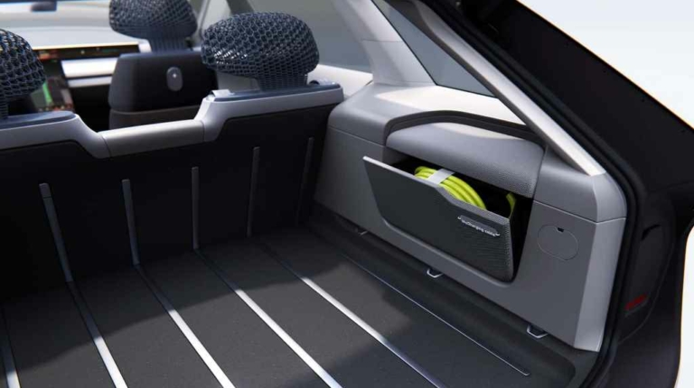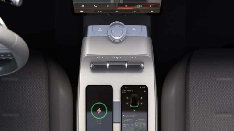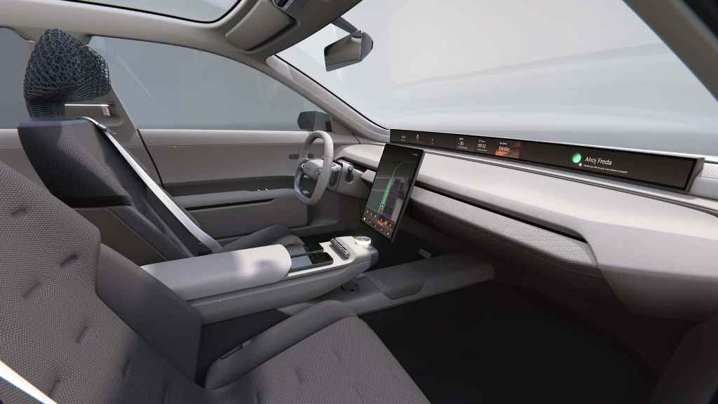 Салон концепту виглядає ще більш преміально, ніж його кузов. Замість традиційної приладовій панелі за рульовим колесом встановлений тонкий 1,2-метровий дисплей Horizon Display, що займає майже всю ширину електрокара біля основи лобового скла. Є окремий екран мультимедії з портретною орієнтацією, а ще подвійний слот для бездротової зарядки смартфона, встановлений на центральній консолі.