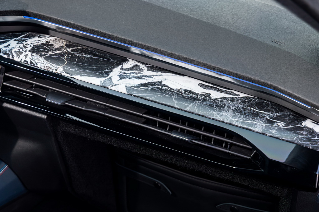 Для обробки використовують як традиційні матеріали, так і досить незвичайні, наприклад, піренейський мармур Noir Grand Antique від компанії Mineral Expertise. Він використаний для прикраси центральної консолі, панелі приладів і на центральній частині рульового колеса.