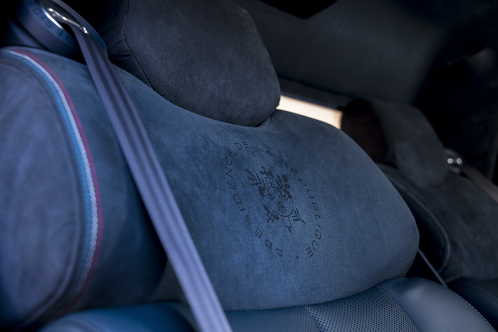Майстри-оббивачі Renault втілюють досконалість мистецтва, що поєднує традиції та інновації. У президентському Rafale кожну деталь виготовили з найбільшою ретельністю, щоб відповідати вимогам протоколу. Добірна шкіра була пофарбована в особливі кольори, а синій верхній рядок був ретельно підібраний відповідно до офіційної палітри кольорів. Підголівники прикрашені майстерним лазерним гравіюванням французького герба. На спинках передніх сидінь розташовані непомітні та функціональні кишені для речей.