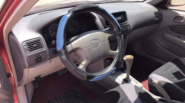 Салон седана модернізувати не стали. Тут з’явилася лише декоративна накладка на кермі. Залишився без зміни і двигун. У рух цю Toyota Corolla приводить 1,6-літровий чотирициліндровий бензиновий двигун потужністю 109 к.с., який пов’язаний з п’ятиступінчастою механічною коробкою передач. Зазначається, що автомобіль має пробіг 180 000 км.