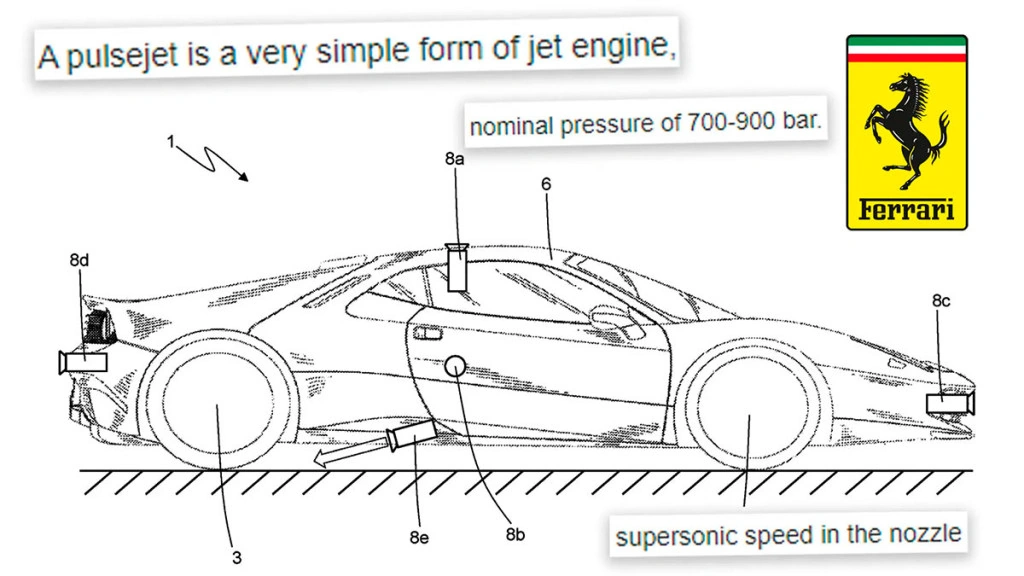 Ferrari «прискорює» свої суперкари у різний спосіб. В арсеналі бренду химерні нові амортизатори від Multimatic та передові гібридні системи із потужними турбованими двигунами. Але й це ще не все. Наприкінці 2019 року компанія запатентувала систему з газовими прискорювачами, але патент опублікували лише кілька днів тому.