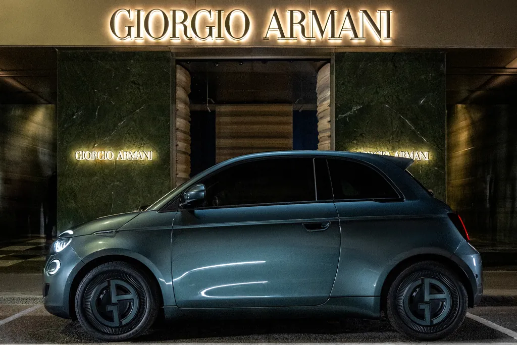 Fiat багато років тісно співпрацює з провідними італійськими Будинками моди, у тому числі з Армані. Новим спільним проєктом відомих італійських брендів стала версія 500e Giorgio Armani Collector's Edition. Автомобіль отримав оригінальне забарвлення інтер'єру та екстер'єру у відтінках Dark Green Micinalised або Ceramic Greige. Однією з яскравих деталей новинки стали 17-дюймові диски з логотипами "GA" в колір кузова.