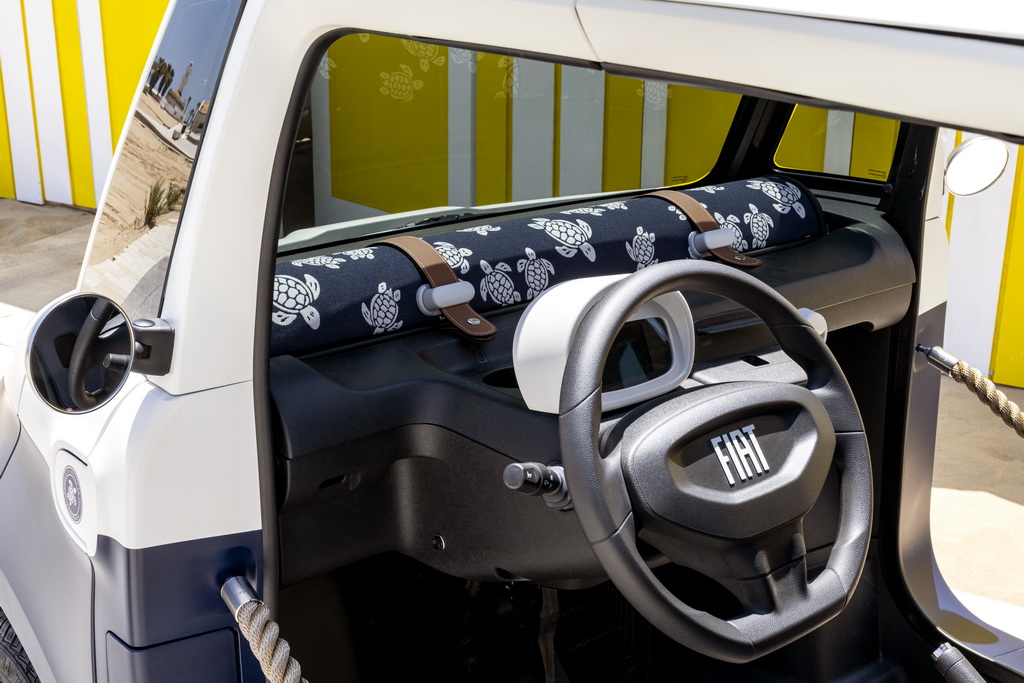 FIAT та Vilebrequin об’єдналися, щоб створити колекційне видання Topolino Vilebrequin, в образі якого втілені “спонтанність і неминучим відчуттям нескінченного літа біля моря”. Fiat Topolino Vilebrequin Collector’s Edition буде виготовлений вручну обмеженим тиражем для італійських та французьких клієнтів. Він ідеально підійде як для тісних вуличок, так і для поїздок на пляж.
