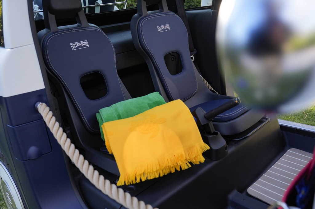 Сидіння оздоблені шкірою прикрашені логотипом Vilebrequin, а хромовані підніжки мають виштампування у вигляді емблеми французького бренду. Замість звичайних килимків використовуються панелі з тику в морському стилі. Передню панель прикрасили тканиною з малюнком у вигляді черепахи з емблеми Vilebrequin та шкіряними ременями. Замість дверей використовуються канати, що символізують зв’язок з морем та яхтами.