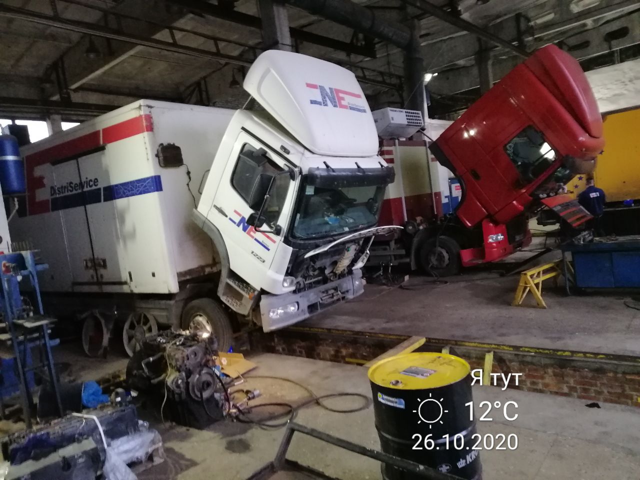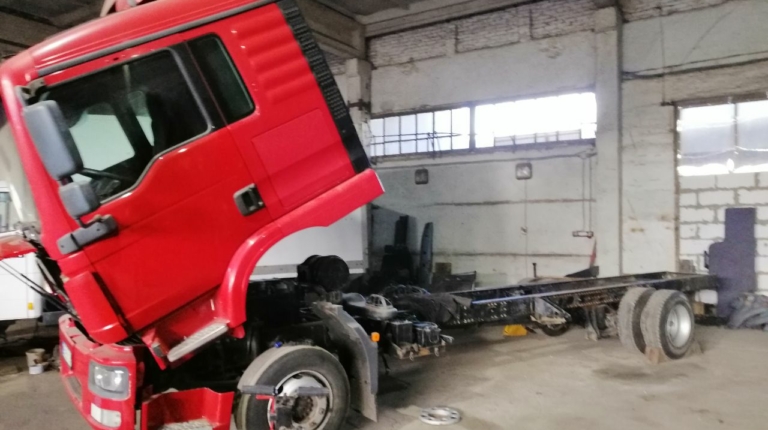 Новий цех із двома ямковими постами під вантажівки, автобуси і причепи, майстерні, офісна частина, клієнтська зона – все це поки що на стадії становлення, але станція вже працює повним ходом. Тут обслуговують і ремонтують марки Mercedes, MAN, Scania. У зоні ремонту працюють 6 досвідчених майстрів.