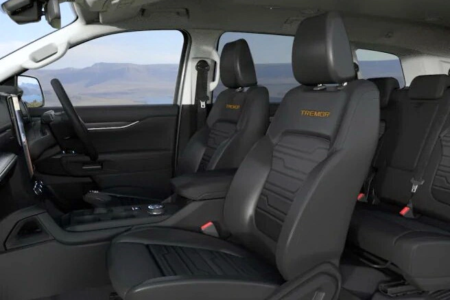 Зовні новинка виділяється іншими ґратами у вигляді бджолиних стільниківв, сталевою захисною пластиною, посиленими бічними підніжками та помаранчевими значками Tremor, що контрастують з ексклюзивним відтінком Command Grey. Усередині Ford додав шкіряні сидіння з тисненням Tremor, гумові килимки та вставки кольору із чорного дерева.