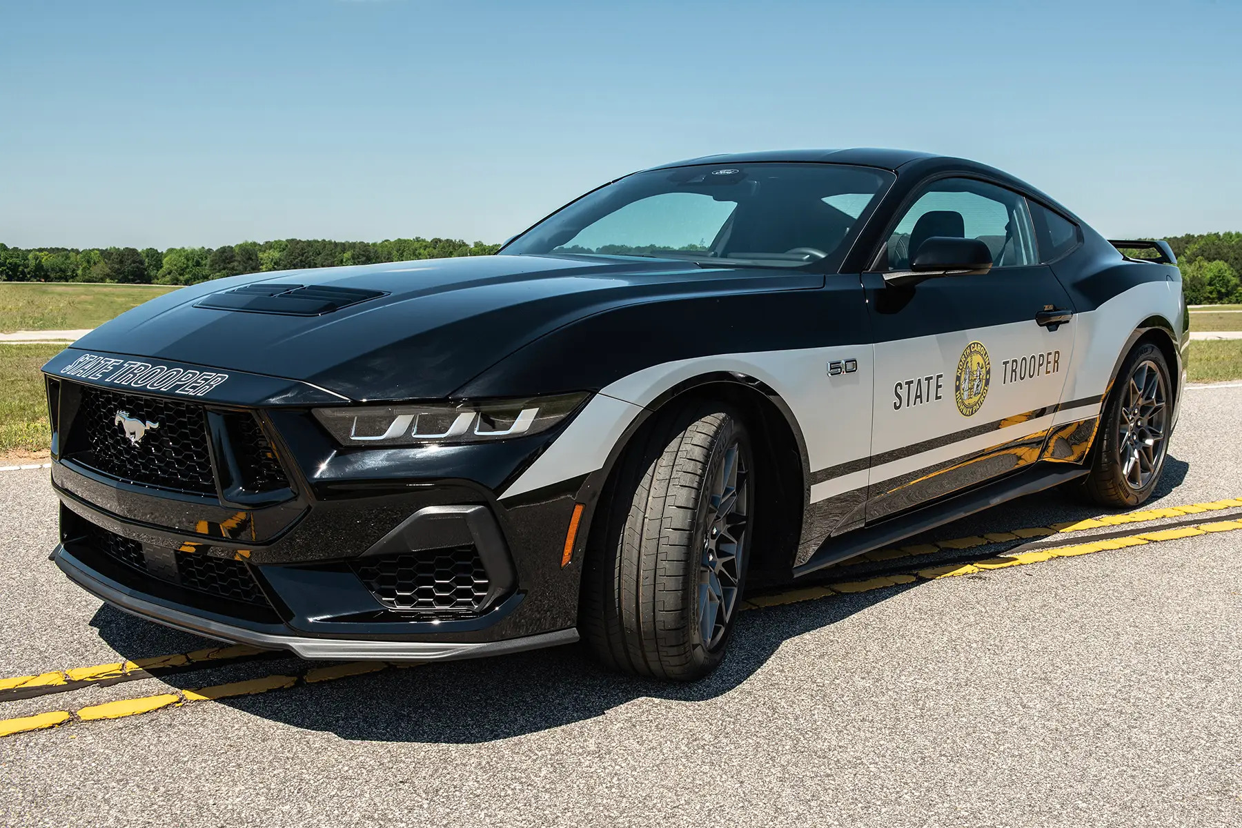 Знімки Mustang 2024 року у сріблясто-чорній лівреї штату опублікували на офіційній сторінці патрульної служби в Instagram. Інформація про то стандартний це GT чи ні не уточнюється. Судячи з колісних дисків та заднього антикрила, автомобілі оснастили пакетом GT Performance Package вартістю 4995 доларів. Також в нього входять гальма Brembo, модернізована підвіска, диференціал Torsen, додаткові розпірки шасі, вихлопна система та передні гаки.
