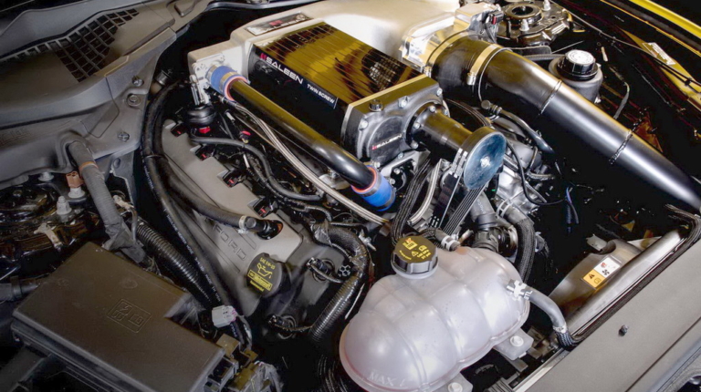 Компресорний 5-літровий V8 двигун видає «на гора» 740 к.с. і 812 Нм крутильного моменту. Крім форсованого мотора автомобіль має спортивну підвіску і потужну гальмівну систему, що дає змогу приборкати норовистий задньопривідний «Мустанг».