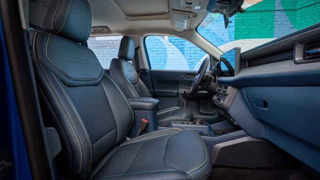 У салоні пікапа встановили спортивні сидіння, оздоблені чорною шкірою. Їх доповнюють написи Lobo на спинках і прострочка в кольорах Grabber Blue та Electric Lime. Також Maverick отримав новий режим руху Lobo, який покращує характеристики проходження поворотів, зчеплення з дорогою і стійкість. Він обзавівся переналаштованим кермовим керуванням та великими гальмами з двопоршневими супортами від Ford Focus ST.