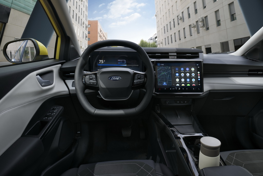 Цифровий кокпіт, запозичений у звичайної Puma, включає 12,8-дюймову шкалу приладів та 12-дюймовий дисплей сенсорний інфо-розважальної системи. Центральна консоль “електрички” відрізняється великими розмірами та має збільшене відділення для дрібниць внаслідок відсутності звичної трансмісії.