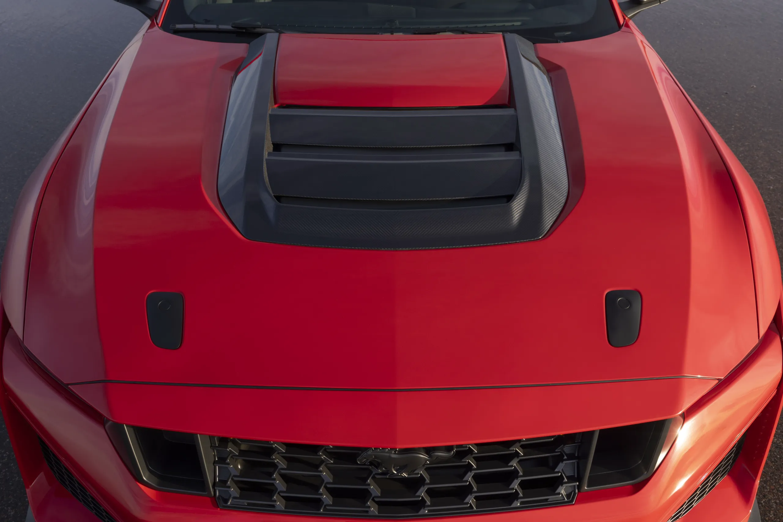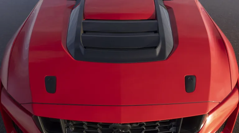 Новий алюмінієвий капот має потужний вентиляційний канал, який покращує охолодження силового агрегату. Коли вентиляційні грати капота знято, вони створюють у 2,5 раза більшу притискну силу, ніж стандартний вентиляційний канал капота Mustang Dark Horse, а карбонове антикрило Mustang Dark Horse SC з пакетом Track Pack допомагає створити приголомшливі 281 кг притискної сили ззаду на швидкості.