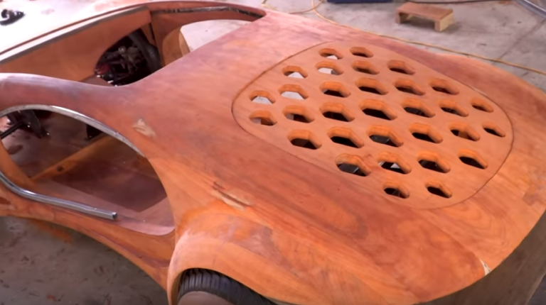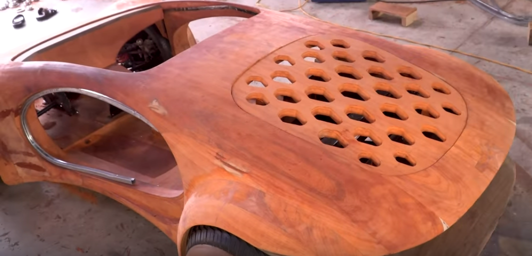 На створення цього дерев’яного шедевра майстер витратив 100 днів. Автомобіль вийшов удвічі меншим за оригінал. У нього повністю робоча підвіска, двері, що автоматично відчиняються, велика кількість світлодіодів всередині і зовні, які відтворюють світловий підпис оригінального електромобіля, і 14-дюймові колеса, взуті у справжні шини.