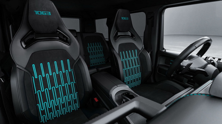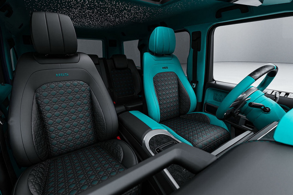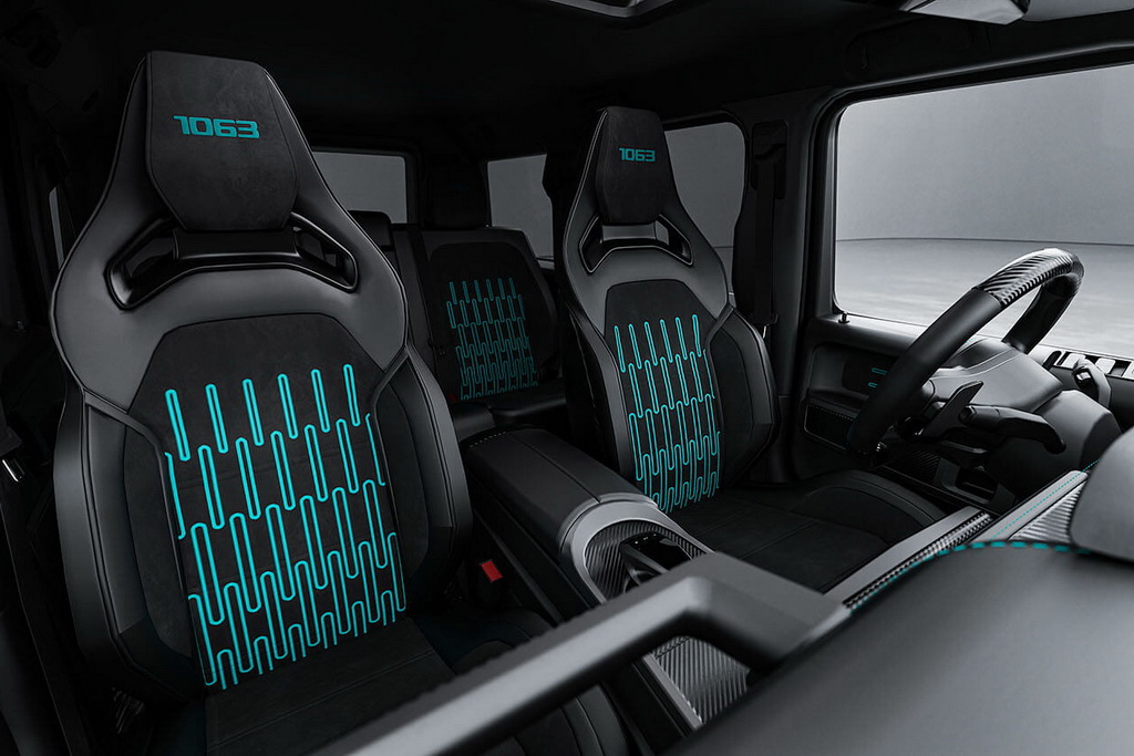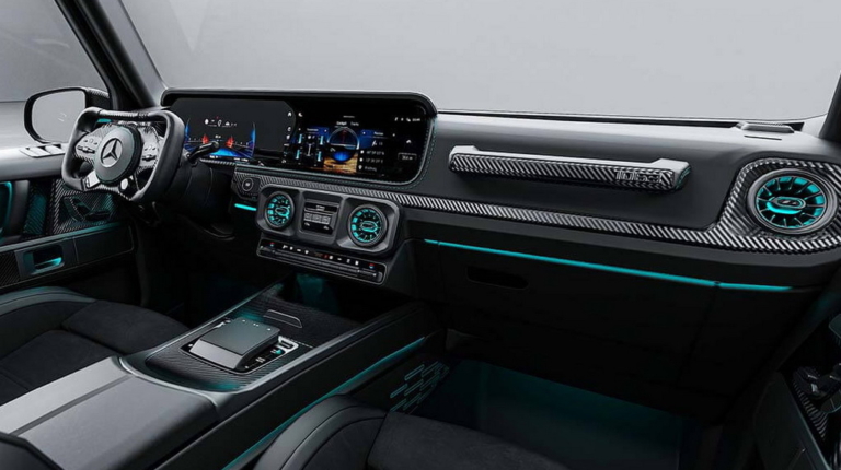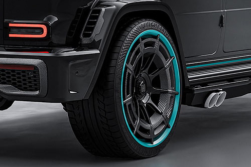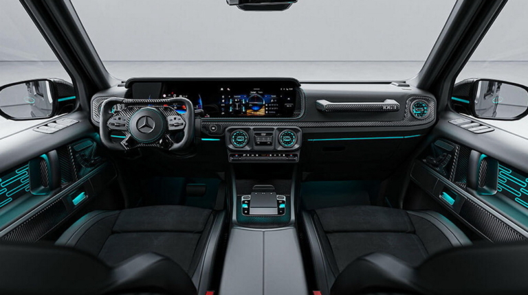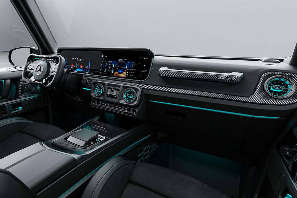 Нові регульовані амортизатори дозволили знизити дорожній просвіт на 30 мм порівняно зі стандартним G63, покращуючи керованість та аеродинаміку, а карбоно-керамічні гальма допомагають приборкати швидкісну машину.