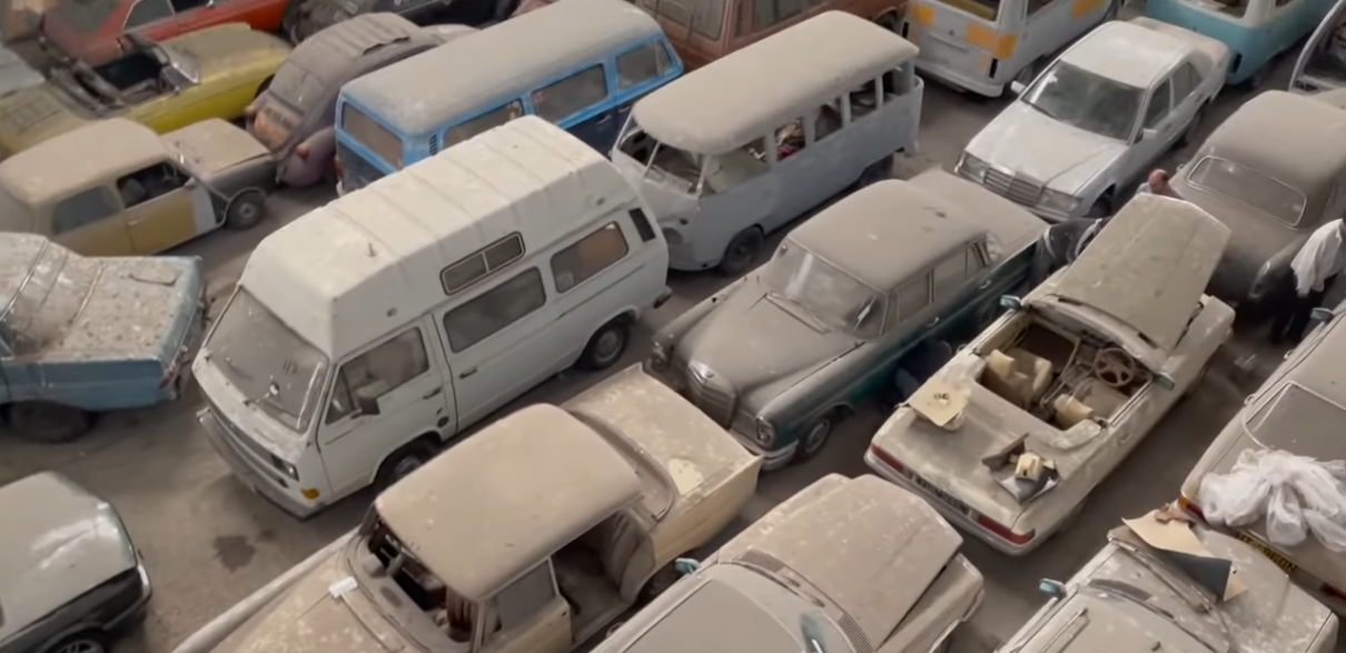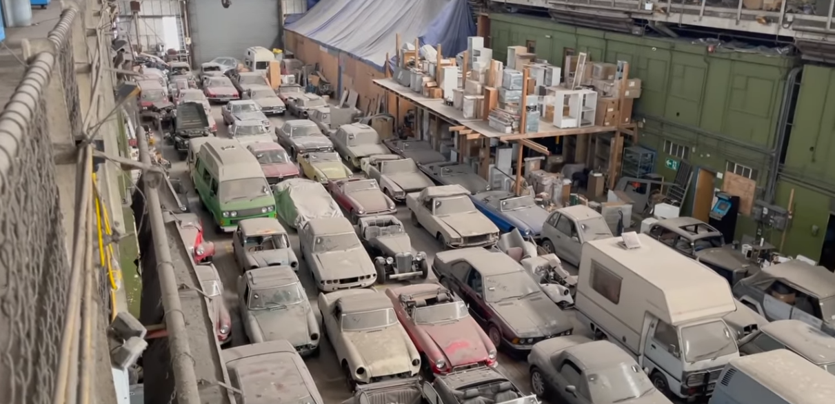 У величезному складському приміщенні стояли 174 класичні моделі. Всі вони простояли тут без руху і належного догляду не одне десятиліття. Машини різних марок і моделей покриті шаром пилу, а на деяких видно корозію. Більша частина автомобілів становить колекційну цінність (навіть у такому стані). На окремих полицях лежать запчастини, оригінальні набори інструментів, інструкції та інше.