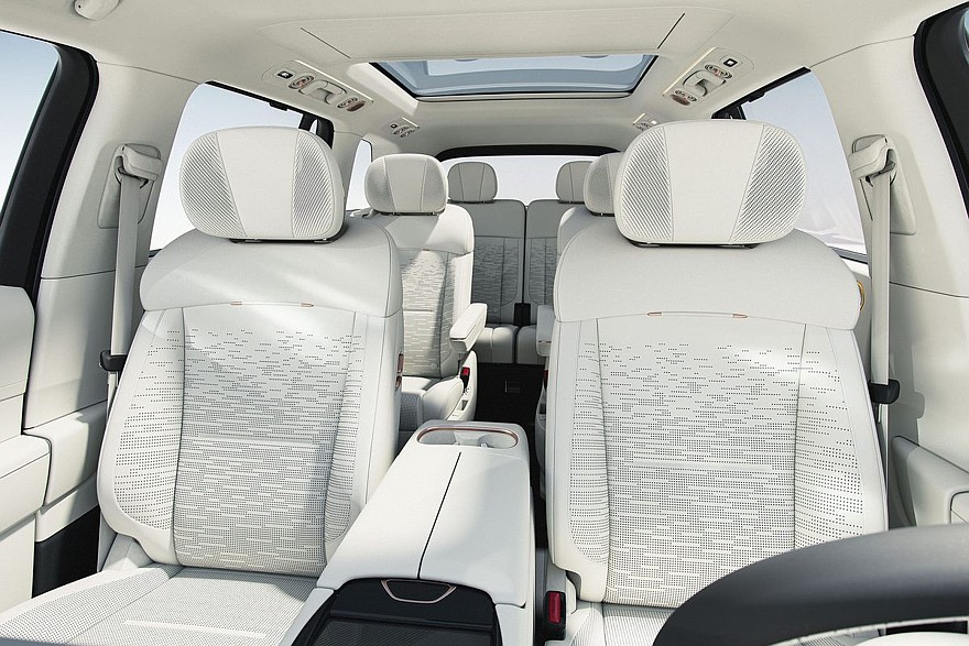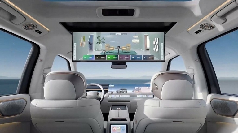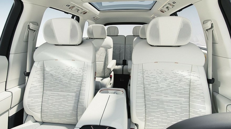 В оснащення салону входить невелика цифрова панель приладів та 30-дюймовий екран, встановлений по центру передньої панель. Також є аналогічний дисплей для задніх пасажирів, який інтегрований у стелю та відкидається у разі потреби, проекційний дисплей та сидіння з електрорегулюванням. Ще аудіосистема Harman/Kardon, вбудований холодильник, панорамний дах та автопілот із лідаром.