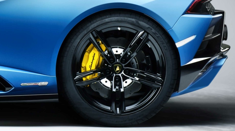 Також гіперкар отримав 19-дюймові колісні диски, взуті в спеціально розроблені шини Pirelli P Zero, і карбоново-керамічні гальма. Крім того Huracán EVO RWD Spyder отримав новий унікальний дифузор, перероблені повітрозабірники з великими ребрами і новий сплітер. М’який дах родстера можна скласти за 17 секунд на швидкості щонайвище 50 км/год.