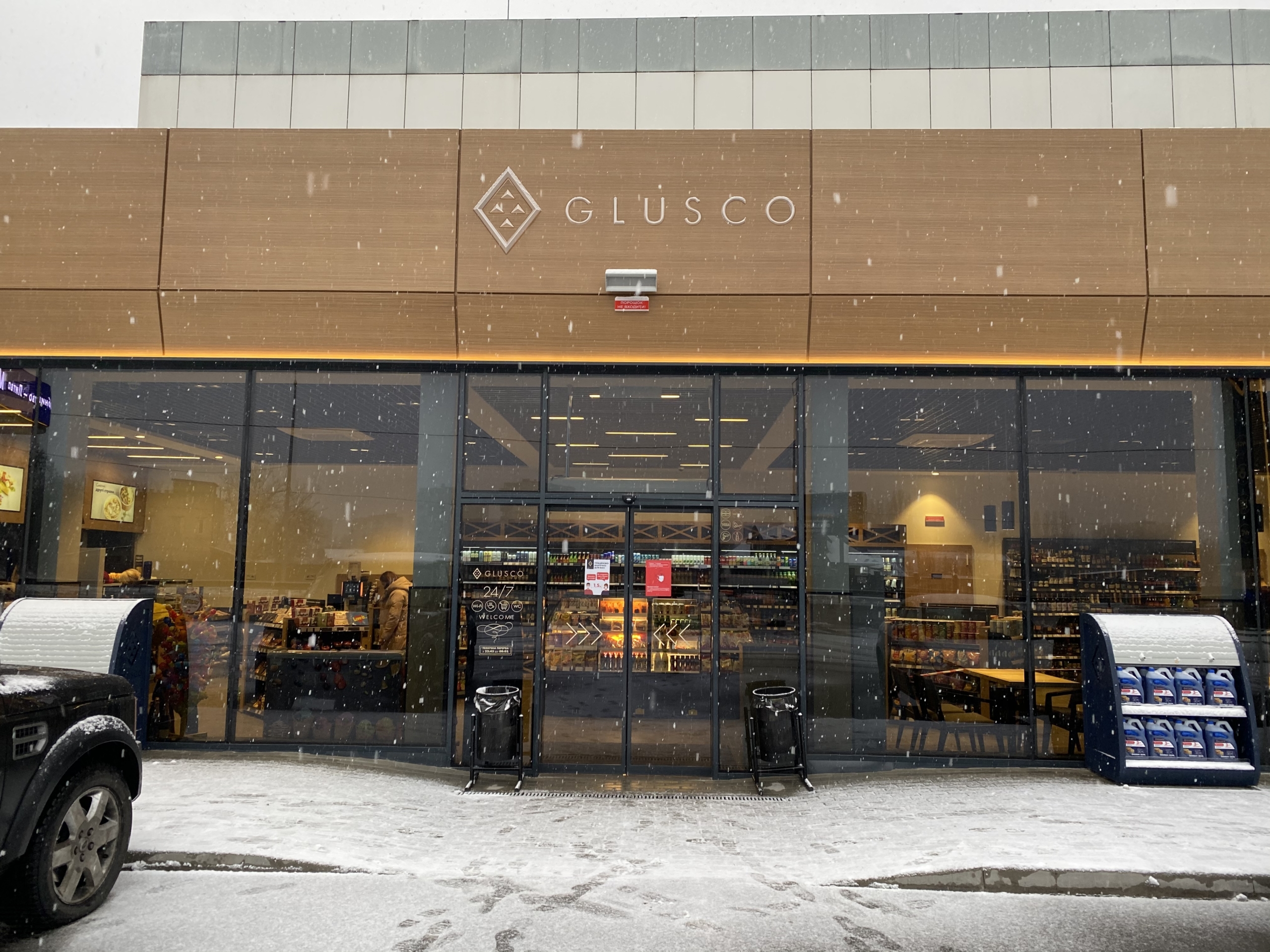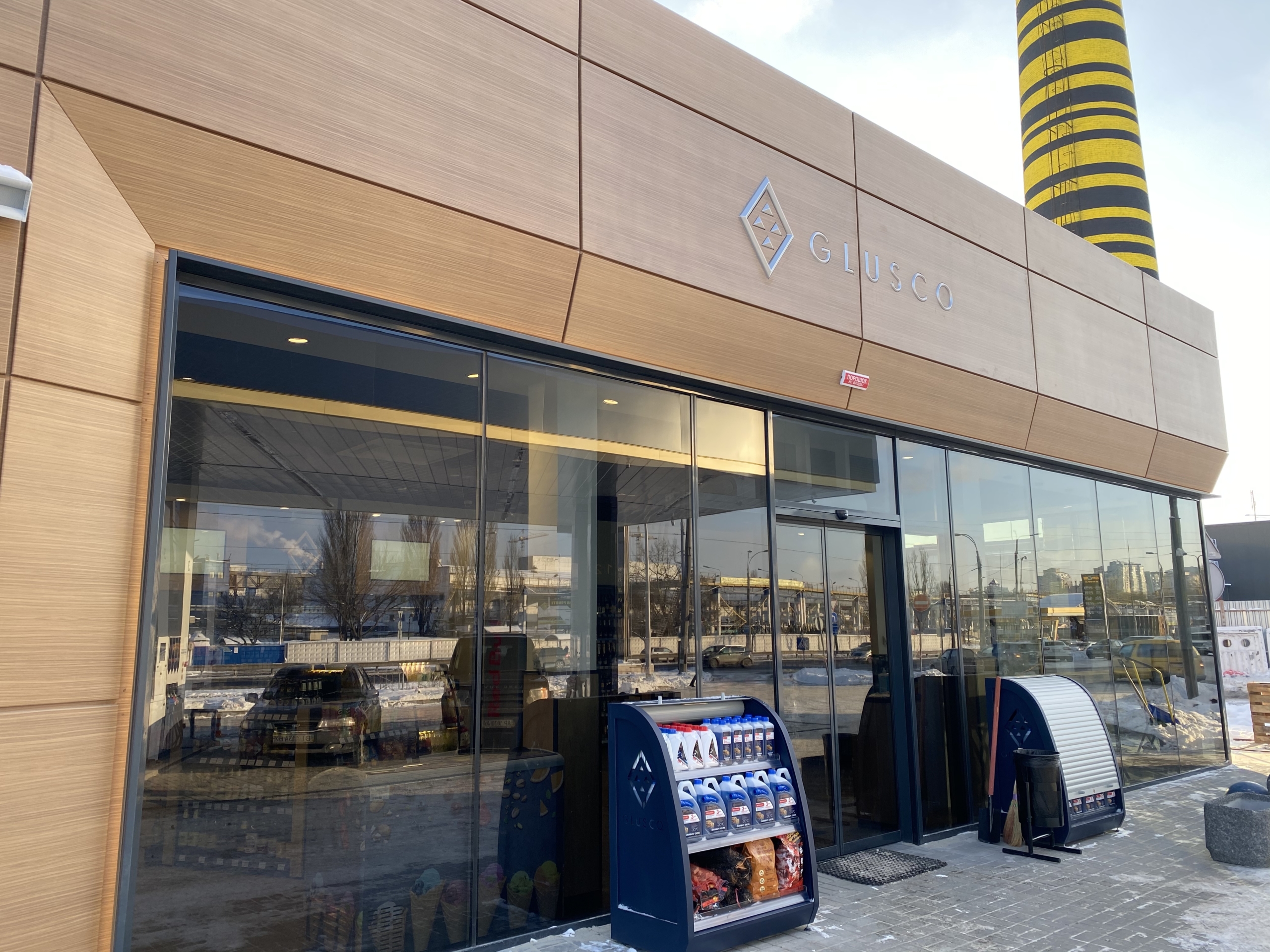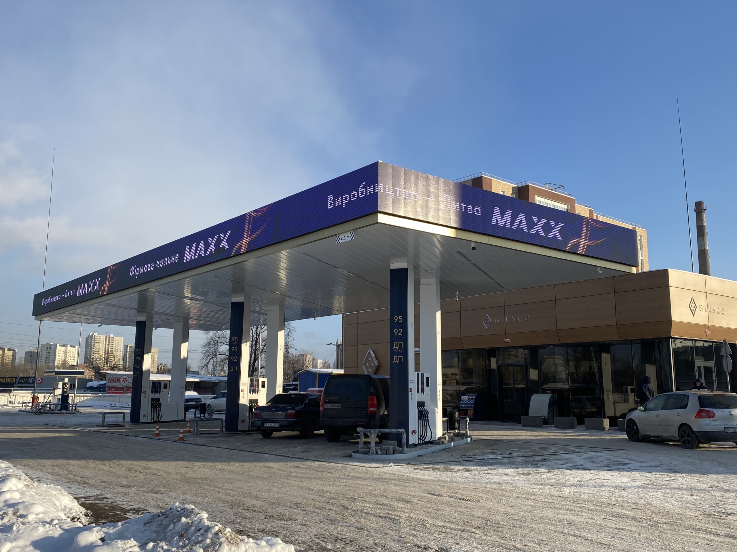 Оновлені автозаправні комплекси Glusco відкрили двері за адресами: Столичне шосе 98 та вул. Лугова 9 (Оболонський р-н м.Києва). Нові станції обладнано сучасними мультімедійними фризами, встановленими на навісах паливо-роздавальних колонок.
