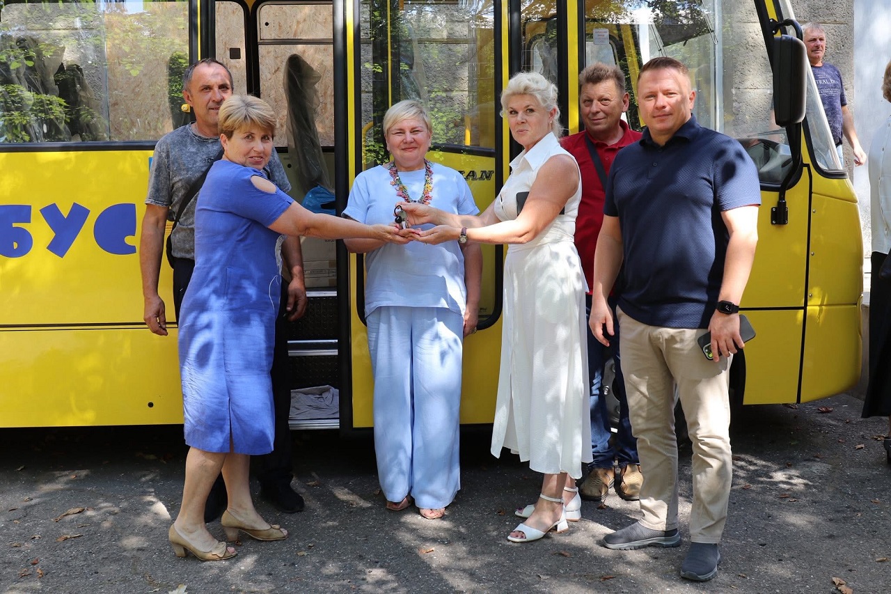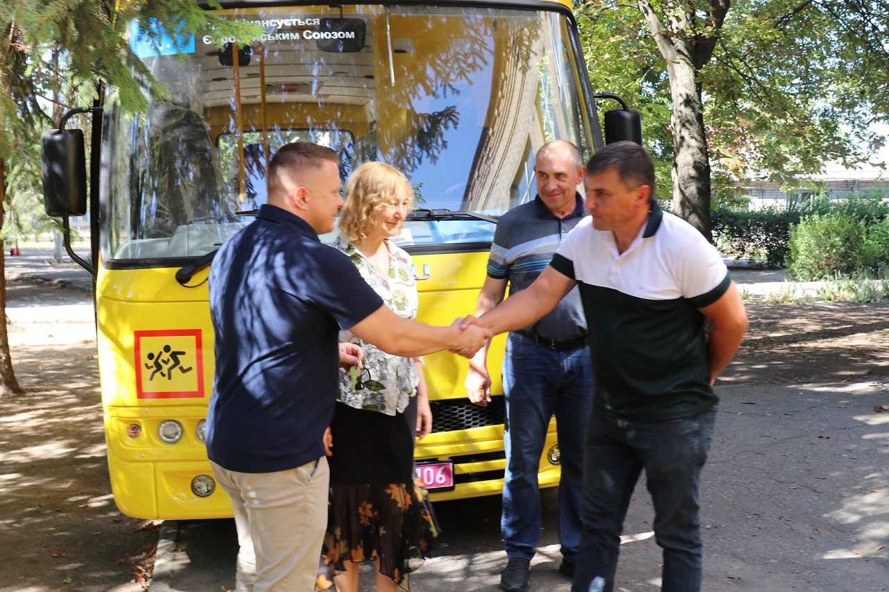 Ключі від автобусів освітянами передали голова Миколаївської обласної ради Антон Табунщик разом із начальницею департаменту освіти і науки Миколаївської ОВА Аллою Веліховською.