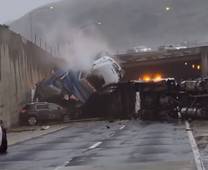 Аварії на дорогах – справа звична. Особливо на тих ділянках, де рух дуже активний. Але деякі з них продовжують дивувати. Як, наприклад, ДТП, що сталася на шосе 14/5 у Санта-Кларіті (штат Каліфорнія, США).