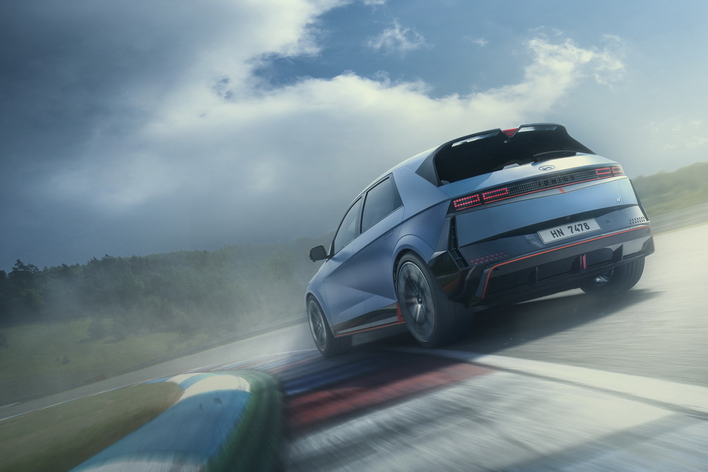 Модель N ще більше відрізняється від стандартного Ioniq 5 зміною пропорцій. Вона на 20 мм нижча на 50 мм ширша знизу, щоб вмістити ширші шини, і на 80 мм довша завдяки більш помітному дифузору.
