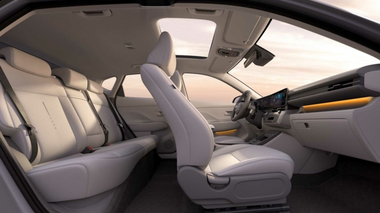 Нова Kona трохи приросла у розмірах. Її довжина становить 4350 мм, що у 145 мм більше, ніж в попередника. Колісна база збільшилась на 60 мм і становить 2660 мм. Ширина – 1825 мм. Габарити актуальні для паливної та гібридної версій, а повністю електрична буде компактнішою. Екстер’єр моделі став стильнішим і виконаний у дусі мінівена Staria.