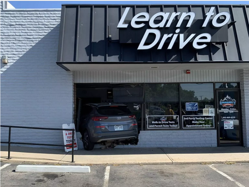 У штаті Колорадо (США) стався курйозний випадок. Водій Hyundai Tucson врізався у фасад будівлі, де була автошкола. Примітно, що чоловік працював у ній інструктором з водіння.