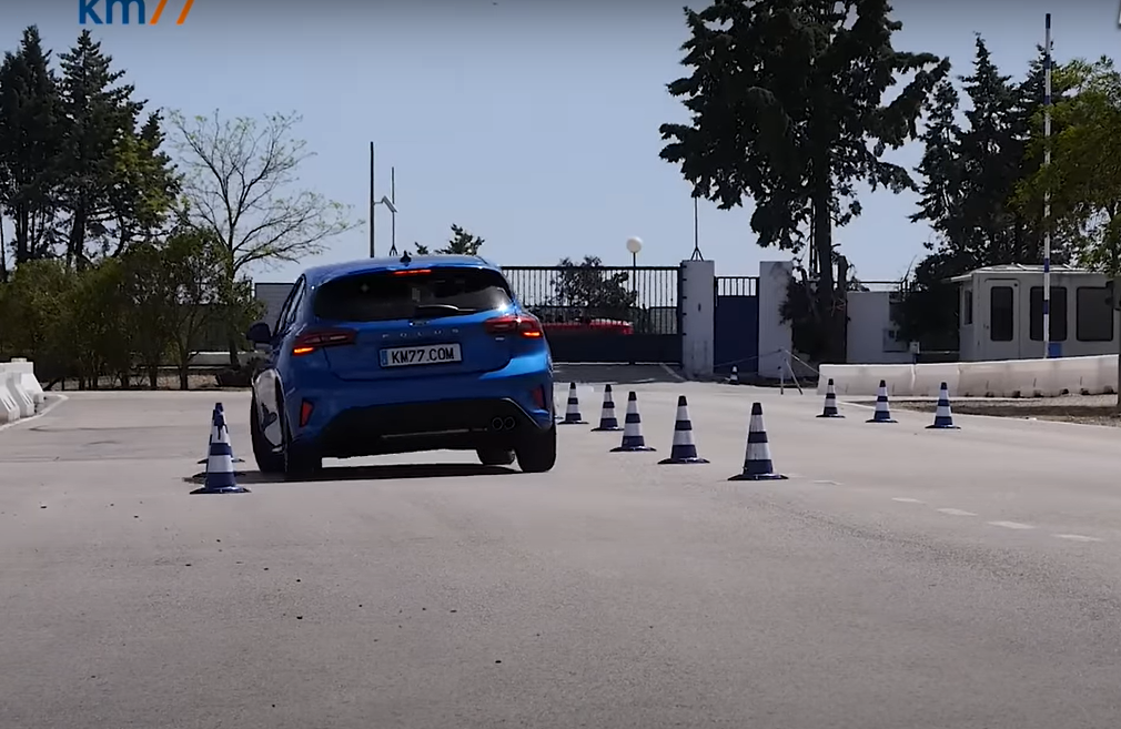 Спочатку Ford Focus перевірили на слаломі, який він пройшов з легкістю, не зачепивши жодного конуса. На проходження смуги йому знадобилося 25,1 секунди. Це непоганий результат для автомобіля цього класу.