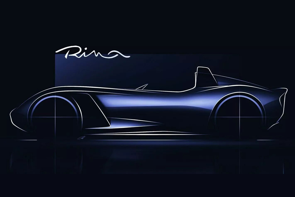 Rina буде побудована на шасі з вуглецевого волокна та отримає легкі панелі кузова з карбону у стандартній комплектації. Тизери демонструють класичний профіль спідстера з довгим капотом, мускулистими колісними арками та виразною задньою частиною. Примітні деталі дизайну включають тоновані фари, компактні бічні дзеркала, дуги безпеки, скульптурні контрфорси та видатний задній спойлер. Доповнюють його ретро чарівність пара круглих світлодіодних задніх ліхтарів.