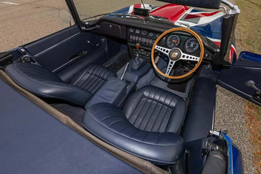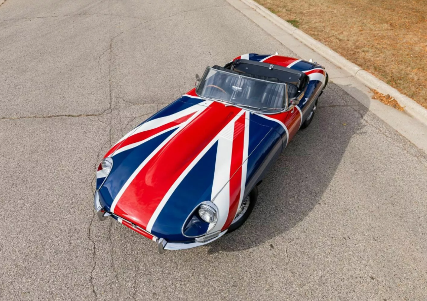 На майданчику Mecum відбудеться аукціон, у рамках якого продадуть спорткар Jaguar E-Type, забарвлений кольорами британського прапора. Кабріолет був зіркою комедійної кінотрилогії про Остіна Пауерса.