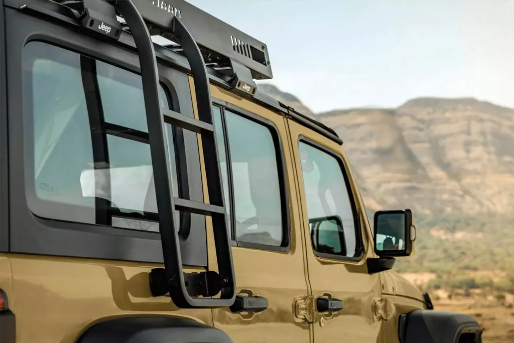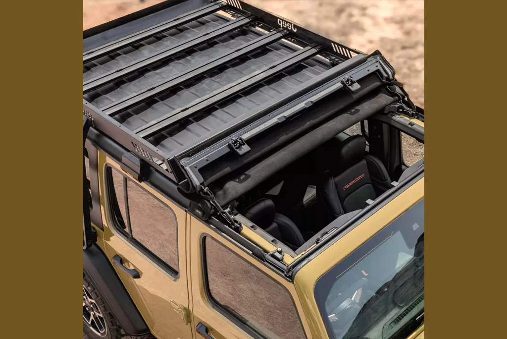 У списку опцій є додатковий пакет аксесуарів, який включає дах Sunrider, бічні сходи та багажник на даху. Бічні підніжки з електроприводом входять до стандартної комплектації. Усередині є кілька штрихів у стилі ретро, наприклад, ручки та всепогодні килимки з яскравим червоним написом Jeep. Також є передні та задні відеореєстратори.
