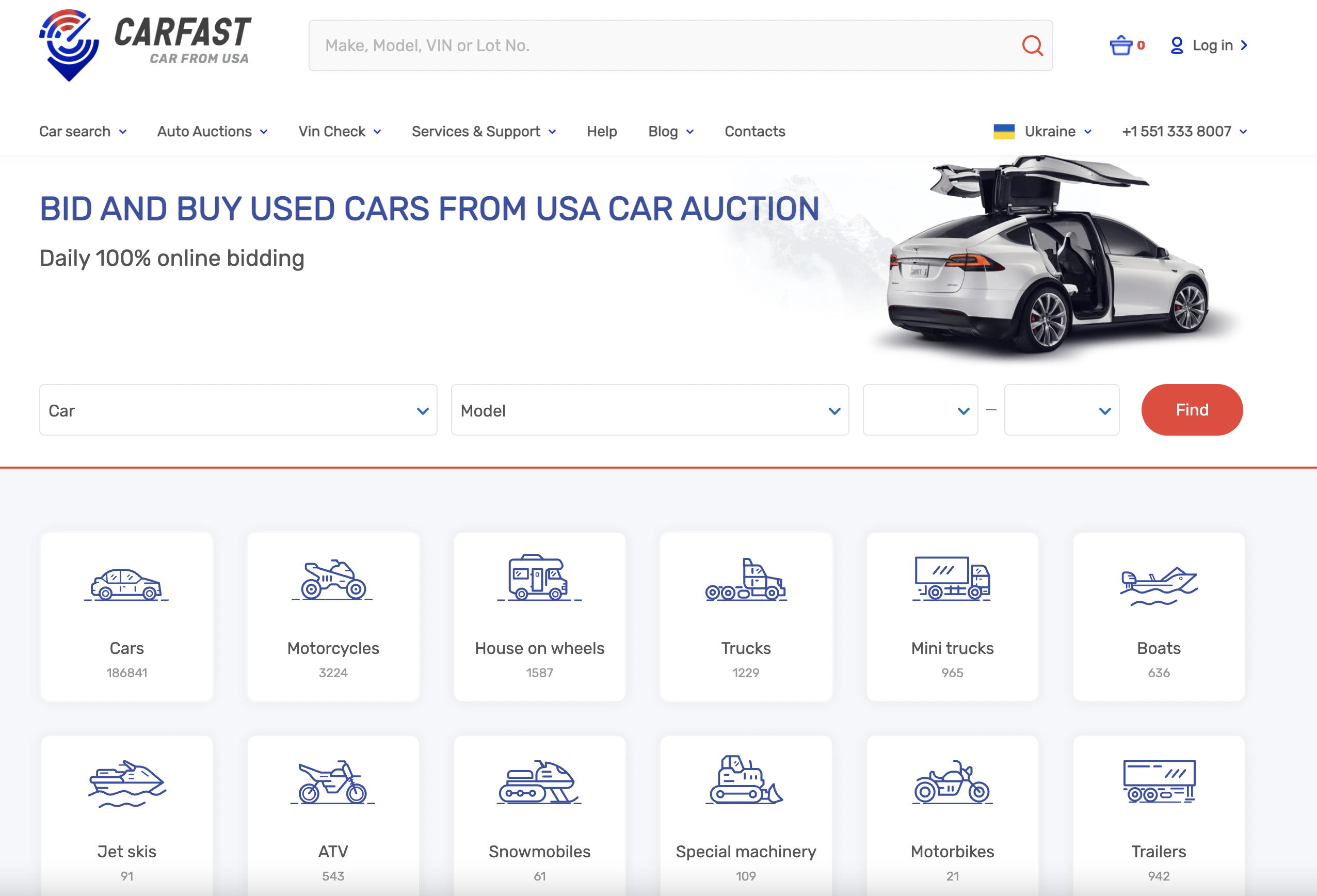 На аукціонах США автомобільний асортимент найширший і різноманітний у світі. Левова частка автомобілів — з невеликим пробігом або в експлуатації 5-7 років. Компанія carfast-express.com допоможе безпечно і вигідно купити авто зі США в Києві. Також здійснити купівлю вподобаної моделі можна і самостійно.