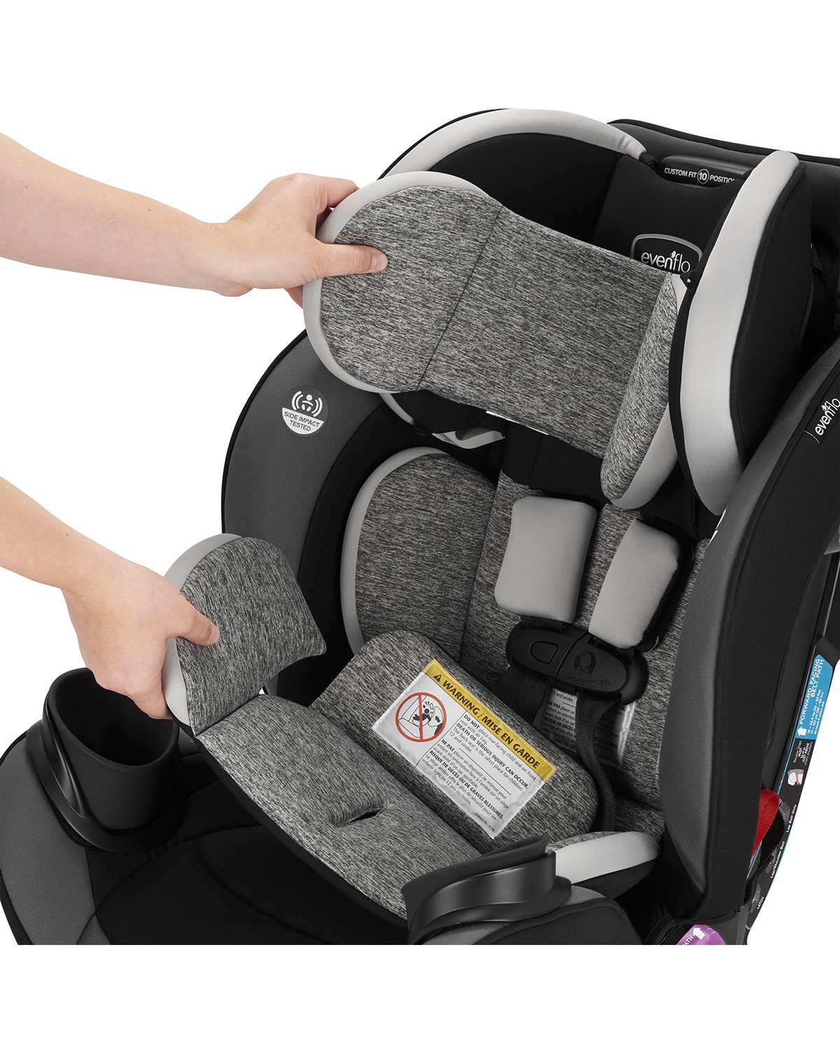 Крім пом’якшення ударів, наповнювач крісла забезпечує зручність посадки малюка. Крім того, конструктори крісла Evenflo EveryStage DLX відзначають особливу підтримку спинки новонародженої дитини в положенні проти ходу руху. Це особливо важливо під час їзди нерівними дорогами.