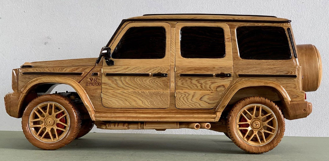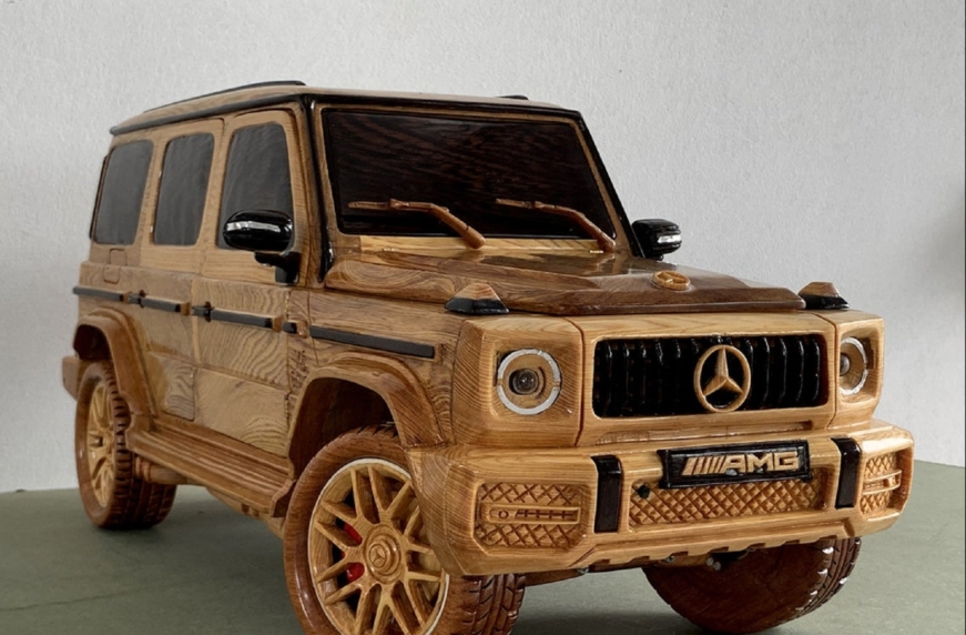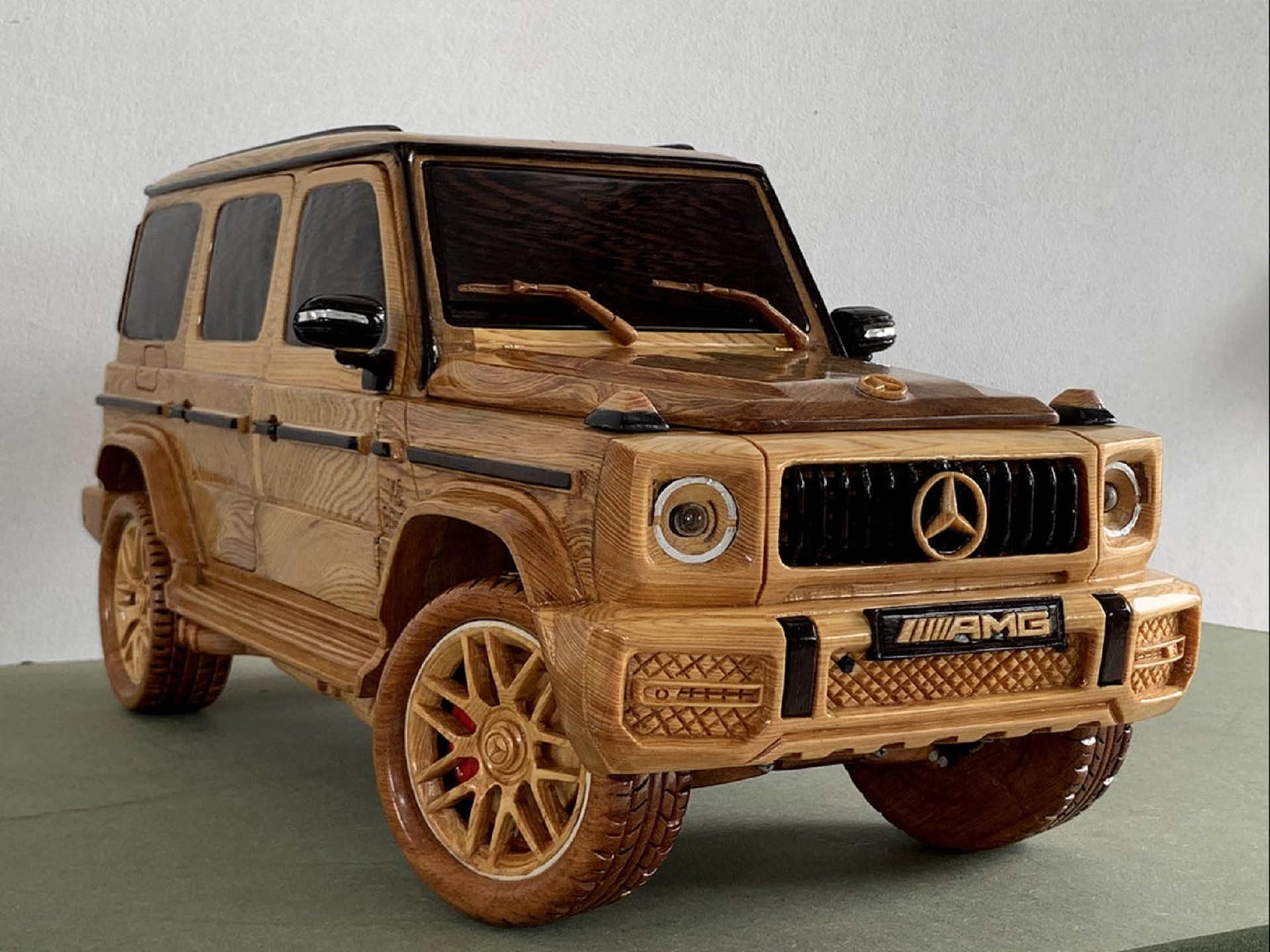 Материалом для ее изготовления послужил кипарис, а весит такой автомобиль 4 кг. Для того, чтобы создать Mercedes-AMG G63, мастерам ателье Woodworking Arts понадобились 40 дней.